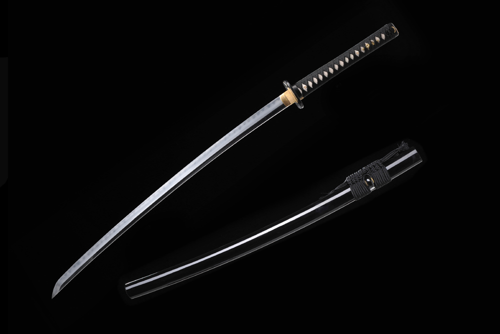 28寸高檔手工刀全長(zhǎng):104cm 刃長(zhǎng):68cm 柄長(zhǎng):28cm刃材:1095鋼燒刃無(wú)槽柄材:實(shí)木 繞好黑帶+真魚(yú)皮鞘材:實(shí)木黑色亮光漆 繞黑色真絲帶配件:銅包裝:9*9彩盒+真絲刀袋