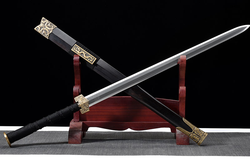 20寸漢武劍 花紋鋼無(wú)槽八面拋光磨快口劍身爛龍泉鄭氏方章 壓鑄銅配件作舊 黑檀木殼 柄繞紅黑蠟繩 麻木錦盒 帶真絲刀帶 收藏證書 5折小冊(cè) 小瓶刀油 白手套 保養(yǎng)卡