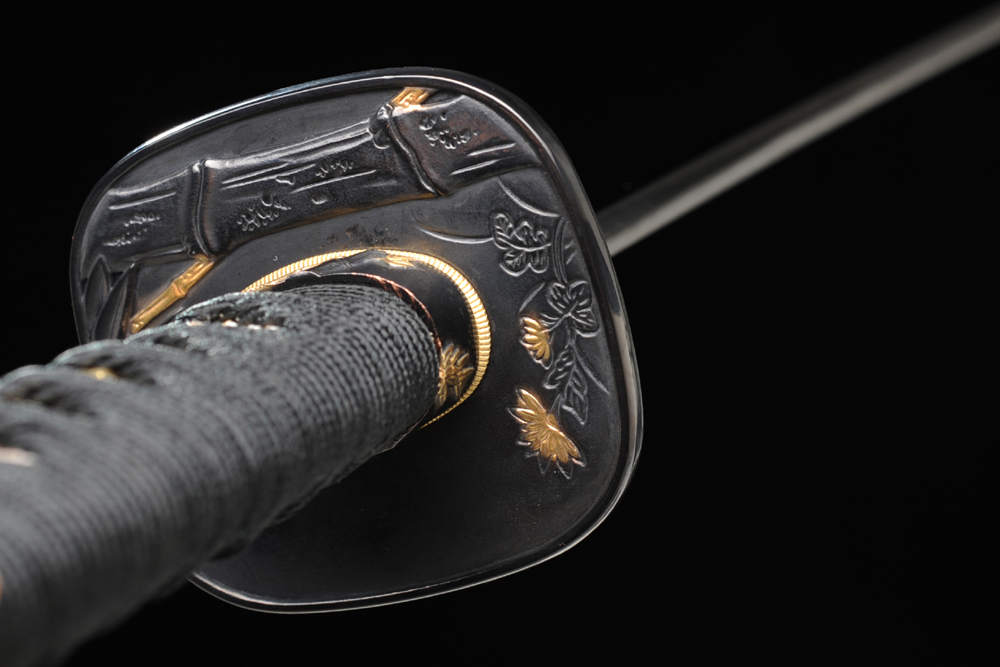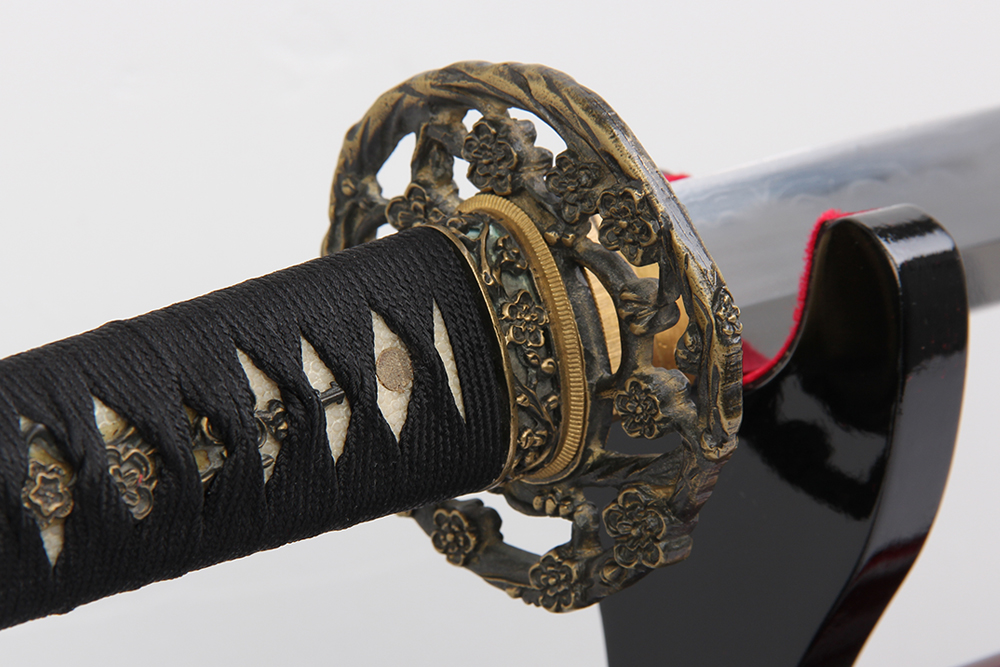 刃材:百煉花紋鋼四枚夾鋼燒刃無槽三色大頭
