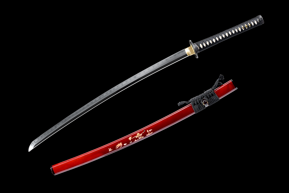 28寸高檔手工刀全長:104cm 刃長:68cm 柄長:28cm刃材:1095燒刃 無槽高檔推磨三色快口刃紋要清晰 刃線到刀尖柄材:實(shí)木 繞黑色帶+真魚皮鞘材:實(shí)木酒紅漆鑲嵌貝殼荷葉鴛鴦圖三圈黑 繞黑色真絲帶配件:銅包裝:紅龍布木盒裝紅色菊花真絲刀袋