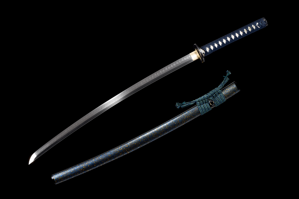 28寸手工刀全長:104cm 刃長:68cm 柄長:28cm刃材:1095鋼燒刃無槽有切線柄材:實木 繞藍色羊毛帶+真魚皮鞘材:實木亞光底藍點加金點三全黑 繞綠間藍真絲帶配件:銅+鋅合金包裝:雙瓦紙盒