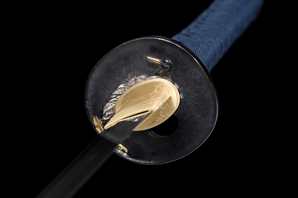 鞘材:實木亞光底藍點加金點三全黑 繞綠間藍真絲帶