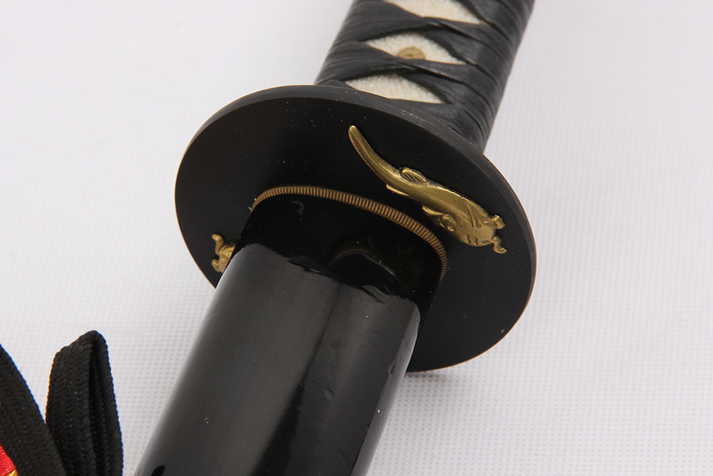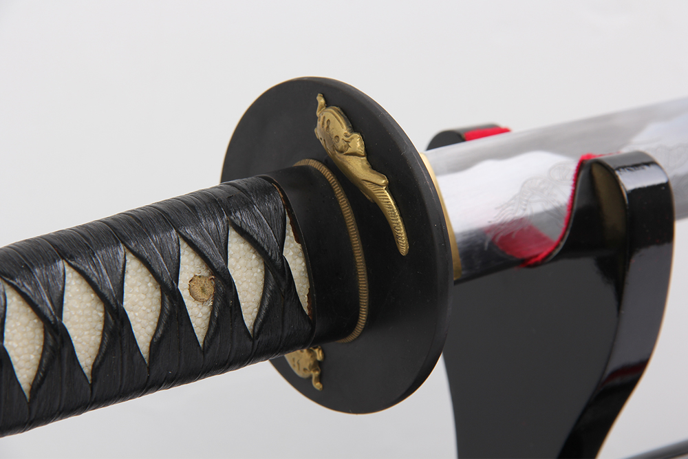 28寸手工刀全長:104cm 刃長:68cm 柄長:28cm刃材:不銹鋼熱處理 反面開雙槽正面手工爛龍柄材:實木 繞黑豬皮+真魚皮鞘材:實木黑亮光漆 繞黑色帶配件:銅+鋅合金包裝:紅龍布盒裝外加雙瓦紙內(nèi)盒 帶黃龍布袋