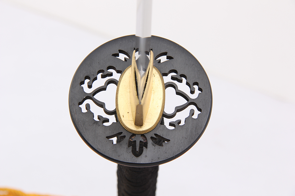 28寸手工刀全長(zhǎng):104cm 刃長(zhǎng):68cm 柄長(zhǎng):28cm刃材:百煉花紋鋼無槽有花口有切線柄材:實(shí)木 繞黑色帶+真魚皮鞘材:實(shí)木黑底白云殼 繞黑白真絲帶配件:銅+鋅合金包裝:黑彩盒 帶黑布袋