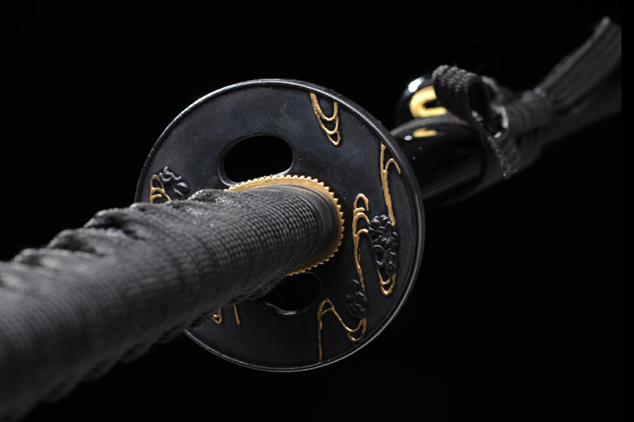 28寸手工刀全長:104cm 刃長:68cm 柄長:28cm刃材:1045鋼無槽有花口有切線柄材:實木 繞黑色帶+真魚皮鞘材:實木黑亮光漆 繞黑色帶配件:銅+鋅合金包裝:黑彩盒 帶黑布袋