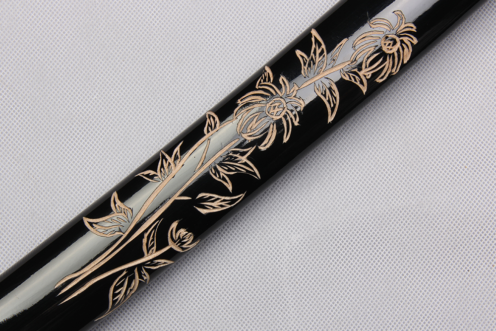 鞘材:實(shí)木黑亮光刻菊花 繞黑色帶