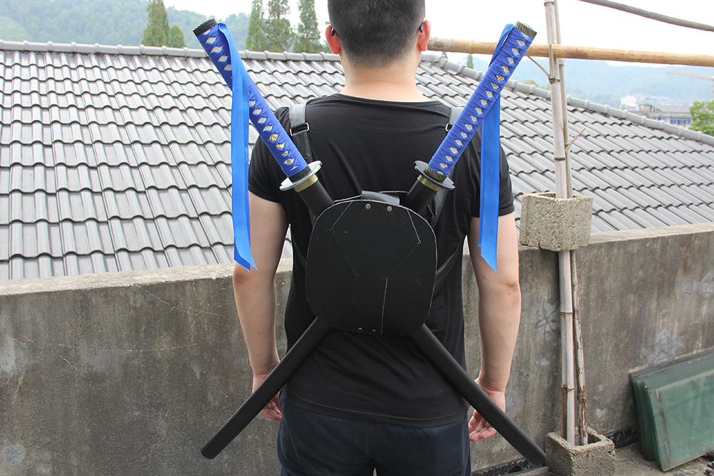 28寸忍者神龜雙刀 手工刀全長:104cm 刃長:68cm 柄長:28cm刃材:1045鋼有槽有花口有切線柄材:實(shí)木 繞寶藍(lán)帶+仿魚皮(系寶藍(lán)飄帶)鞘材:實(shí)木亞光黑漆 繞寶藍(lán)帶配件:鋅合金包裝:雙瓦紙盒