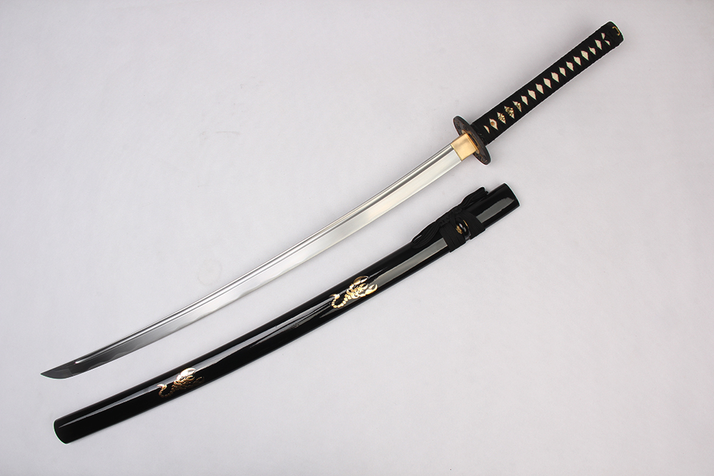 28寸手工刀全長(zhǎng):104cm 刃長(zhǎng):68cm 柄長(zhǎng):28cm刃材:1045鋼有槽有花口有切線柄材:實(shí)木 繞黑色帶+真魚(yú)皮鞘材:實(shí)木黑亮光貼金色蝎子 繞黑色帶配件:銅+鋅合金包裝:雙瓦紙盒 帶黑布袋