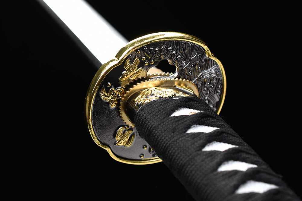 28寸手工刀全長:104cm 刃長:68cm 柄長:28cm刃材:1045鋼全槽有切線有花口柄材:實木 繞黑色帶+仿魚皮鞘材:實木黑亮光貼鑲貝葫蘆藤 繞黑色帶 配件:銅+鋅合金包裝:雙瓦紙盒 帶黑布袋