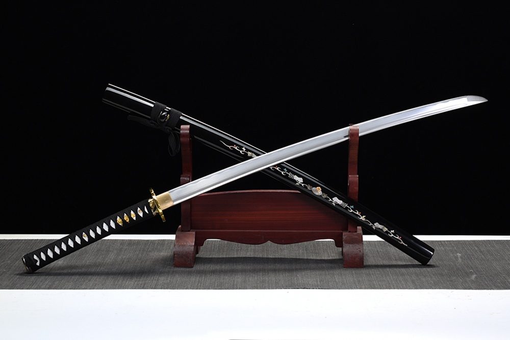 鞘材:實木黑亮光貼鑲貝葫蘆藤 繞黑色帶
