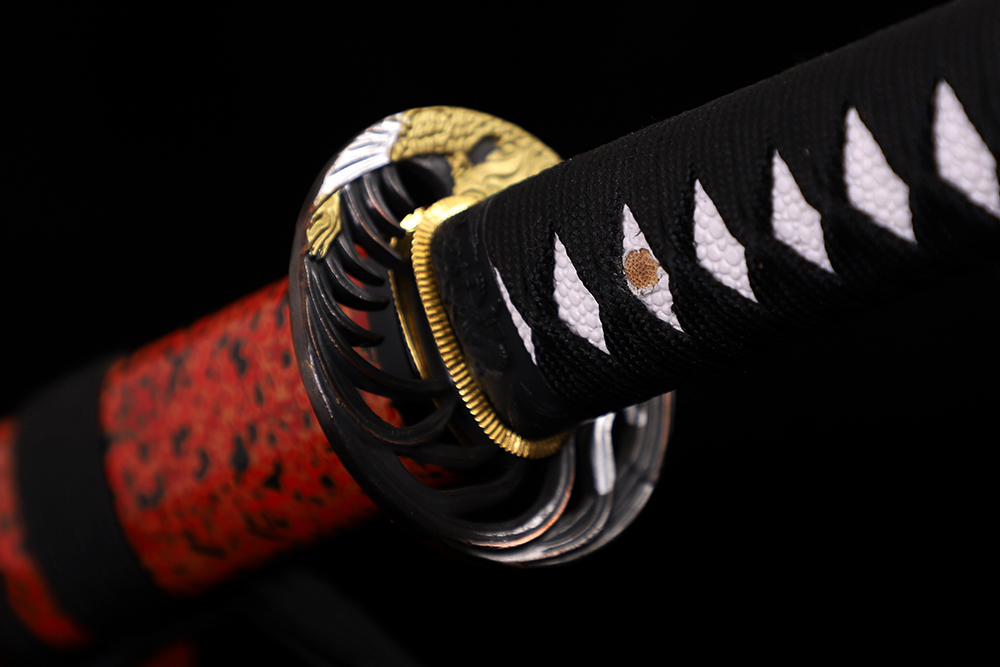 鞘材:實木黑亮光加紅黑金三色斜口兩圈黑 繞黑色帶