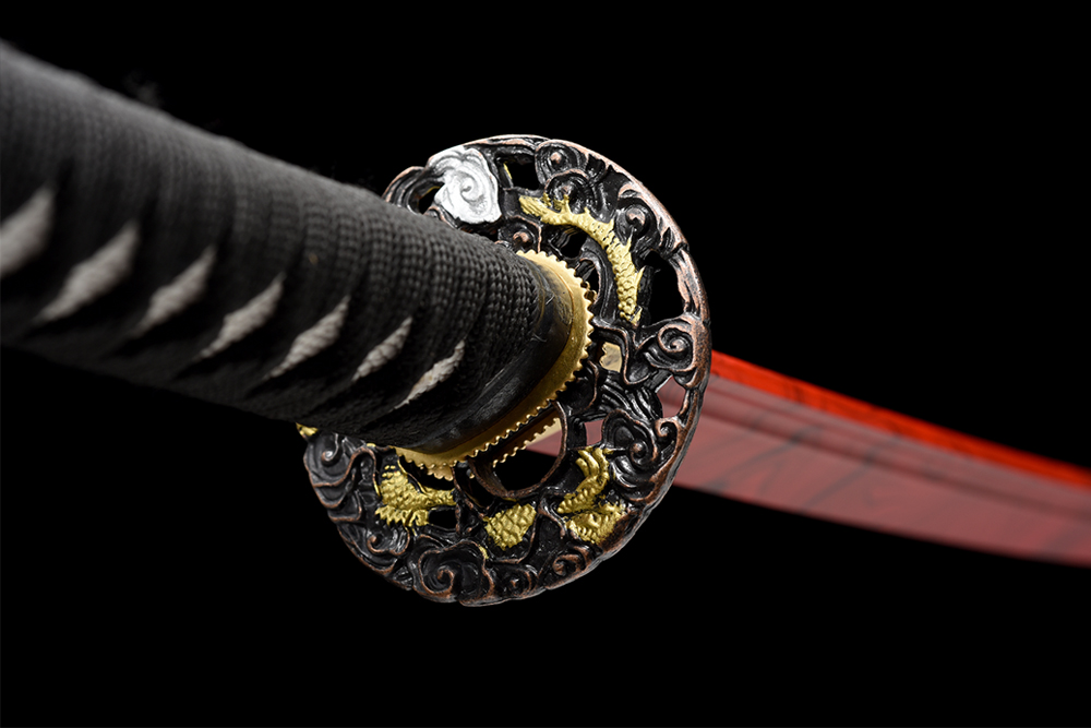 28寸手工刀全長:104cm 刃長:68cm 柄長:28cm刃材:塑料刀身 紅色木紋油漆柄材:實木 繞黑色帶+仿魚皮鞘材:實木黑點殼 繞黑色帶配件:銅+鋅合金包裝:雙瓦紙盒 帶黑布袋